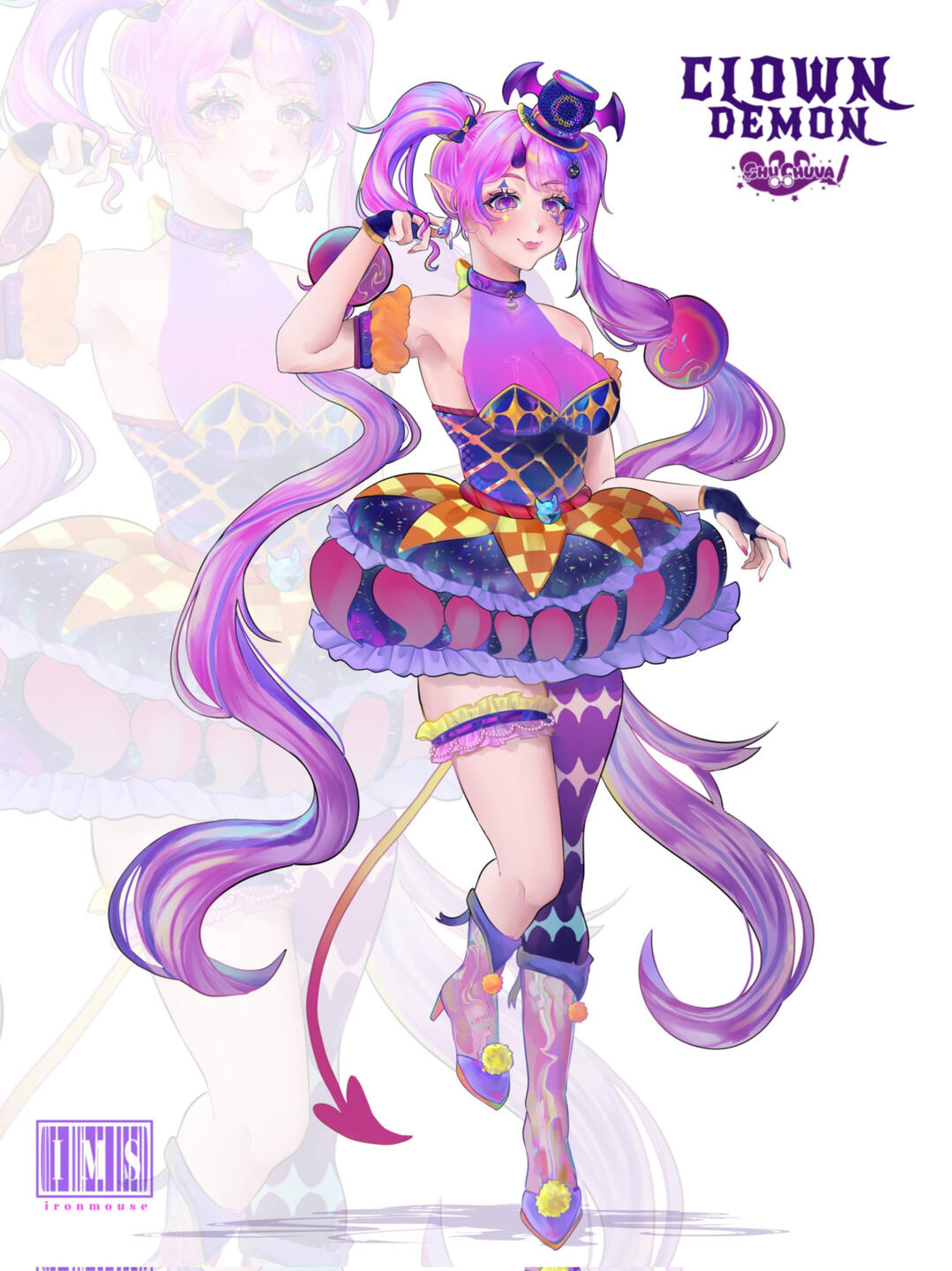➜ The artist’s job is to help create visual ideas for the character, putting your ideas into practice. Once the appearance is defined, the final PSD file will be delivered in high resolution so the client can move on to the next stage: animation. You will also receive a transparent PNG of the model, showcase, and reference images for the rigger if needed.